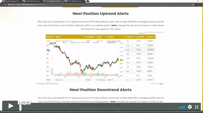 Trading coach Jerry Robinson begins today’s session with a focus on the powerful vast resources found in our Nightly Trading Alerts for swing traders on the hunt for high potential growth stocks. And later, he provides a demonstration of our proprietary Profit Trakker Trend Trading System and explains how it can help swing traders achieve ultimate trading success.