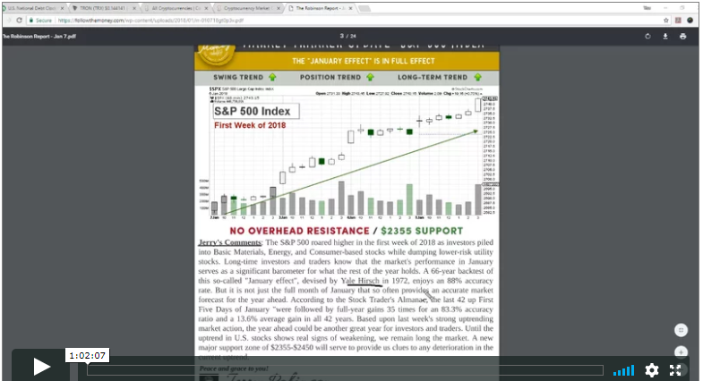 Join Trading Coach Jerry Robinson for a deeper dive into our 2018 Crypto Trakker Portfolio and very exciting announcements of what he is preparing for our Platinum members in the year ahead. Later, a sneak peek at our Top 10 Stocks for 2018.
